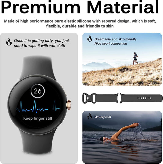 Miimall Compatible for Google Pixel Watch Band, Soft Silicone Sport Wristband for Men Women, Breathable Lightweight Replacement Strap Bracelet for Pixel Watch, 2022(Black-Large)