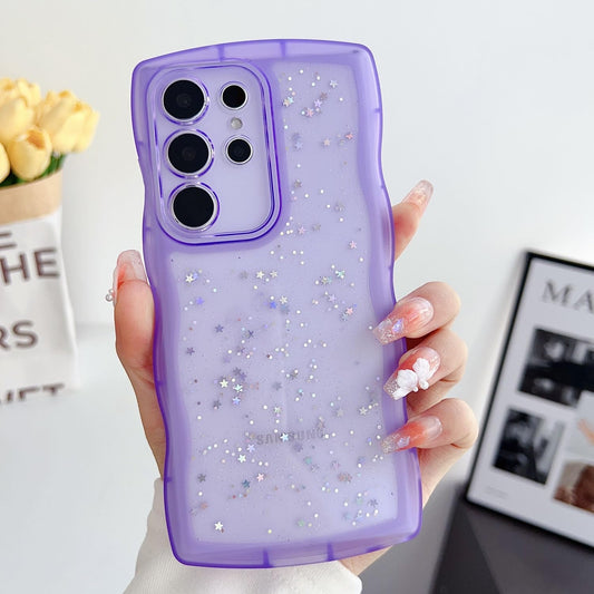 Compatible with Galaxy A53 5G Case for Women Girls Glitter Sparkly Bling Camera Lens Protector Cute Curly Wave Frame Shockproof Protective Cover Phone Case for Samsung Galaxy A53 5G(BLUE)