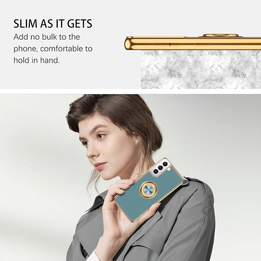 DUEDUE for Samsung Galaxy S21 plus Case with Ring Holder Kickstand 360 Degree Rotation Magnetic Car Finger Soft TPU Slim Cover Shockproof Protective Phone Case for Samsung S21 plus 6.7", Gray Green
