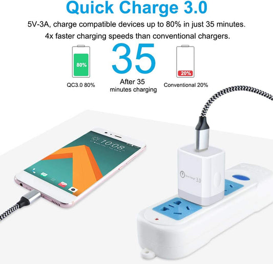 Orsunday Quick Charge 3.0 Fast Charger Compatible LG Stylo 4/5/6, LG G5 G6 G7 G8 V20 V30 V40 V50 Thinq, Samsung Galaxy A50 A60 A70, 18W Rapid Wall Charger with 6Ft USB Type C Charging Cord Cable