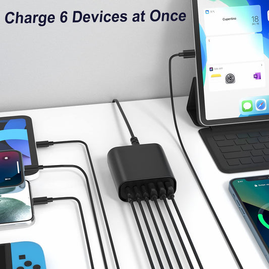 USB C Charger, BURUDU 100W 6 Port USB C Charging Station,Multiports with 3 USB C and 3 QC USB A,Portable PD Fast USB C Wall Charger for Iphone14/13/12/11 Pro Max,Ipad,Iwatch,Pixel Samsung Galaxy
