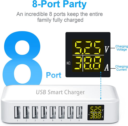 USB Charging Station, Ziwodiv 8-Port 60W/12A USB Charger Station, Multi Ports USB-A Charging Hub with LED Display, Compact Desktop Charger for Multiple Devices, Iphone Ipad Samsung Android and Tablet