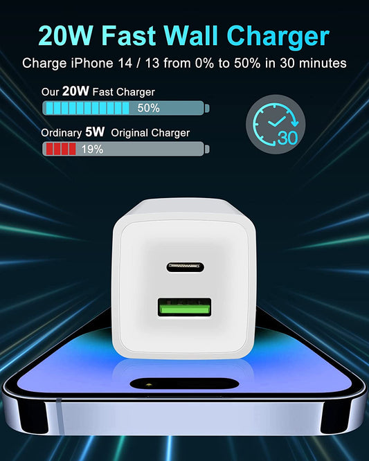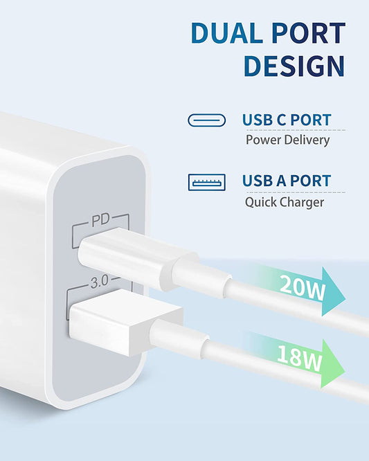 Power-7 Fast USB C Charger, 2-Pack 20W PD + Quick Charger Dual Port Type C Wall Charger Block Plug Compatible with Iphone 14/14 Plus/14 Pro/14 Pro Max/13/13 Pro Max/12/11/Xs/Xr/X/8, Ipad, Airpods