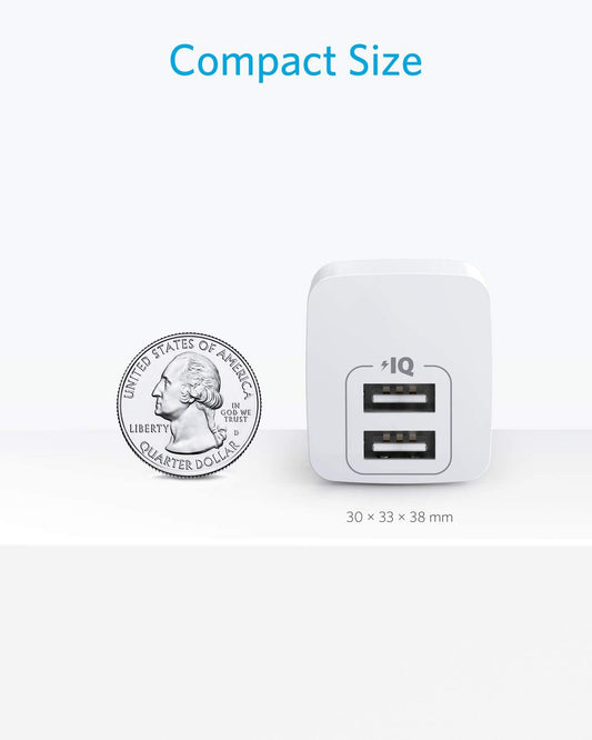 USB Charger, Anker 2-Pack Dual Port 12W Wall Charger with Foldable Plug, Powerport Mini for Iphone XS/ X / 8 / 8 plus / 7 / 6S / 6S Plus, Ipad, Samsung Galaxy Note 5 / Note 4, HTC, Moto, and More