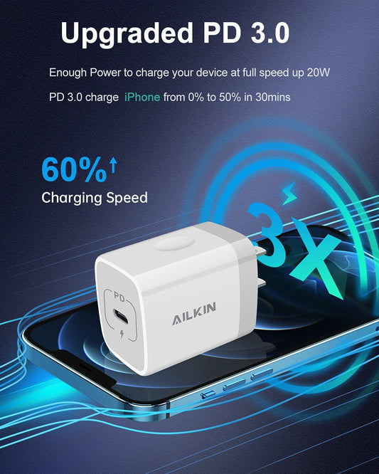 Charger Block USB and USB C Port [3 Pack] USB Wall Charger Multiport [PD 20W USB-C & QC 3.0 USB Port] Compatible with Iphone 13/12/11/X/8, Ipad, Samsung, Google, Galaxy and More