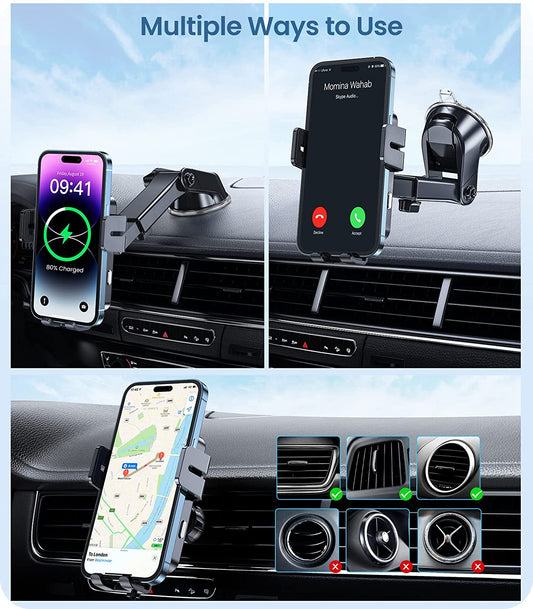 Wireless Car Charger,15W Qi Fast Charging Car Charger Phone Holder Mount, Auto-Clamping Alignment Windshield Dashboard Air Vent Cell Phone Holder for Iphone 13 12 11 Pro Max XS 8, Galaxy S22/S20+ Etc
