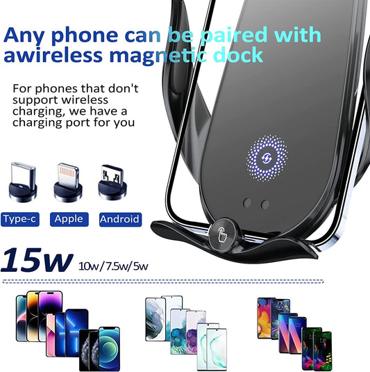 Wireless Car Charger,15W Fast Charging Car Charger Phone Holder Mount, Auto Clamping Car Charger Phone Mount Phone Holder for Iphone 14 13 12 11, Samsung Galaxy S23+ S22, Etc