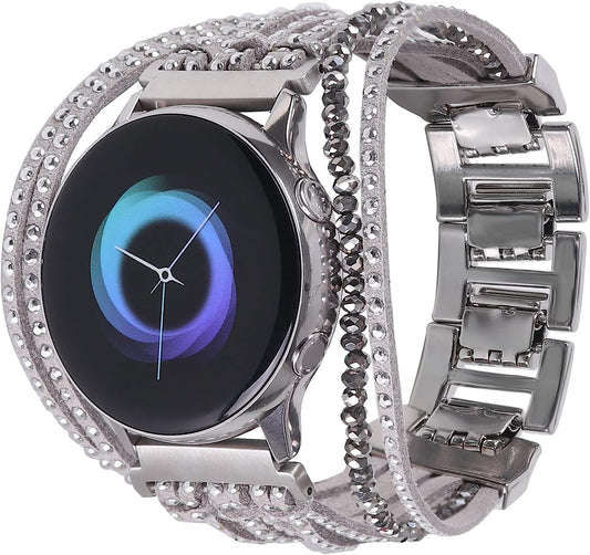 20Mm Bracelet Watch Band Compatible with Samsung Galaxy Watch 4 40Mm 44Mm/Watch 4 Classic 42Mm 46Mm/ Watch Active 2/Watch 3 41Mm/Garmin Vivoactive 3, 20Mm Glitter Leather Boho Bracelet Jewelry Multilayer Strap for Women