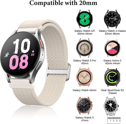 20Mm Braided Bands Compatible with Samsung Galaxy Watch 5&4 Band/Active 2 40Mm 44Mm/Galaxy Watch 5 Pro 45Mm/Galaxy Watch 4 Classic 42Mm 46Mm/Watch 3 41Mm, 5 Pack Elastic Stylish Quick Release Bands