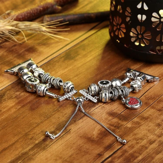 DIY Strap for Apple Watch Band Apple Watch Band with Charms Silver Color with a Heart. Fits with Pandora Beads and Pandora Charms.