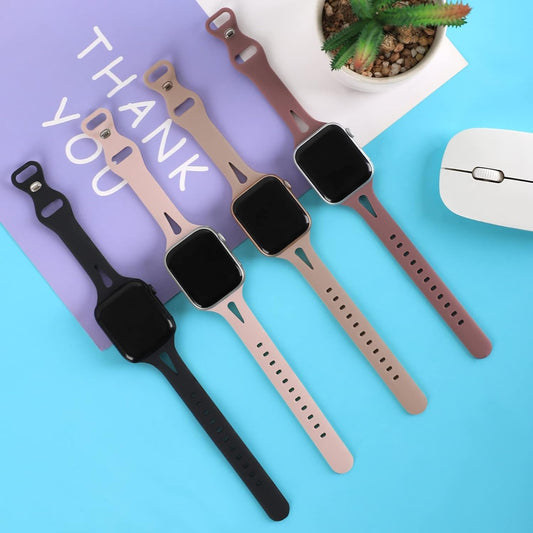 Distore 4 Pack Slim Thin Bands Compatible with Apple Watch 38Mm 40Mm 41Mm 42Mm 44Mm 45Mm 49Mm, Replacement Water Drop Hollow Silicone Sport Strap for Iwatch Series 8/7/6/5/4/3/2/1 Ultra SE Women Men