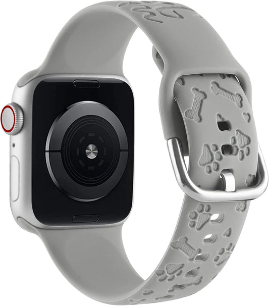 Dog Paw Engraved Silicone Band Compatible with Apple Watch 38Mm 40Mm 41Mm 42Mm 44Mm 45Mm for Women Men,Heart Shape Bone Pattern Carved Soft Silicone Sport Wristband Cute Strap for Iwatch Series SE 9 8 7 6 5 4 3 2 1