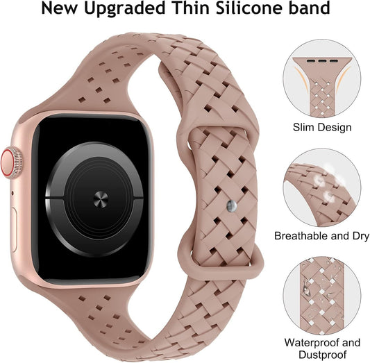 6 Pack Braided Silicone Bands Compatible with Apple Watch Band/Iwatch Bands Women 38Mm 40Mm 41Mm 44Mm 45Mm, Slim Replacement Strap Breathable Sport Wristband for Iwatch Series 9 SE 8/7/6/5/4/3/2/1