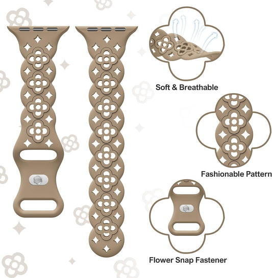 6 Pack Flower Engraved Bands Compatible for Apple Watch Band 40Mm 41Mm 38Mm 42Mm 44Mm 45Mm 49Mm Women,Soft Silicone Cute Wildflowers Sport Laser Strap for Iwatch Bands Series 9 Ultra SE 8 6 5 4 3 2 1