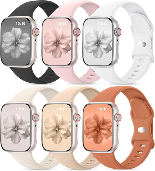 6 Pack Bands for Apple Watch Band 41Mm 40Mm 38Mm 44Mm 45Mm 42Mm 49Mm Ultra 2 Women Men Slim Thin Narrow Silicone Soft Sport Strap Wristband for Iwatch Series 9/8/7/SE/6/5/4/3/2/1