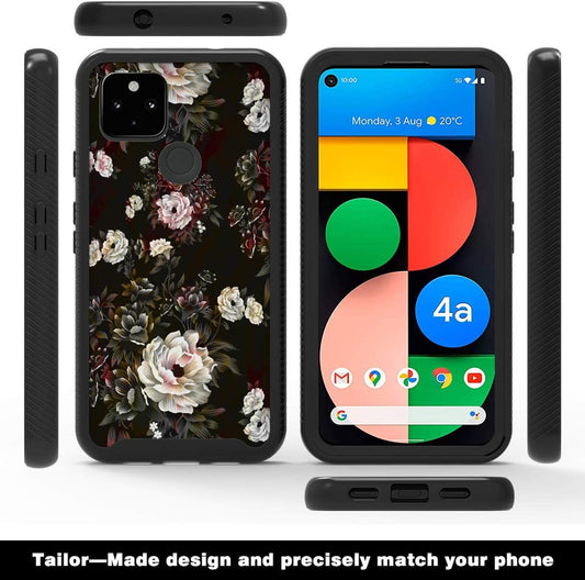 Shinymax Pixel 4A 5G Case with Roses Design,Google Pxiel 4A 5G Phone Case,Hybrid Triple Layer Armor Protective Cover Flexible Sturdy Anti-Scratch Shockproof Cute Case for Women and Girls-Flowers/Black