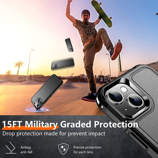 Red2Fire Magnetic for Iphone 14 plus Case [Compatible with Magsafe][Military Grade Drop Protection][Glass Screen Protector+Camera Lens Protector] Heavy Duty Shockproof Phone Case 6.7"-Black