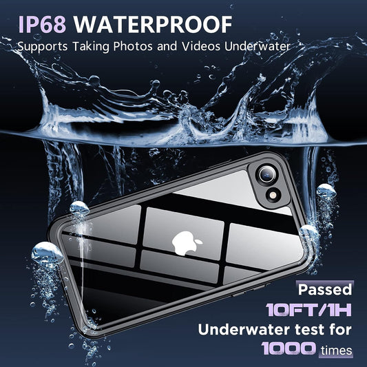 Justcool for Iphone SE Case 2020/2022/,Iphone 8/7 Case Waterproof,Built-In Screen & Lens Protector [IP68 Underwater] [12FT Military Dropproof] Dustproof [360 Full Body Shockproof] Phone Case,Black