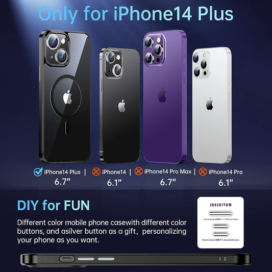 JUESHITUO 2023 Magnetic Slim Crystal Clear Case for Iphone 14 plus Case Magsafe[Not Yellowing][Military Grade Protection][No.1Strong Magnets]Compatible with Iphone 14 plus Magsafe Case 6.7,Space Black