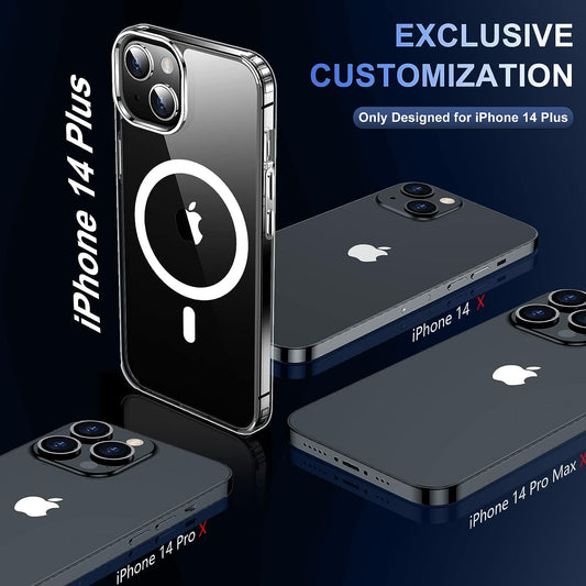 Temdan Magnetic for Iphone 14 plus Case,[Not Yellowing] with 2 Pack [Glass Screen Protector + Lens Protector] Military Drop Protection Shockproof Slim Iphone 14 plus Phone Case 6.7" - Clear