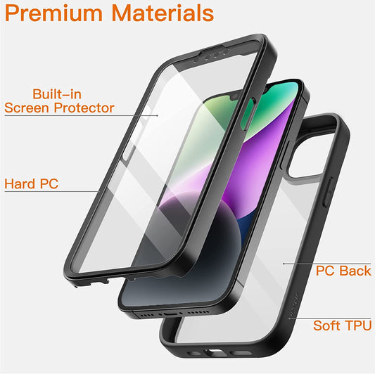 Jetech Case for Iphone 14 plus 6.7-Inch with Built-In Screen Protector Anti-Scratch, 360 Degree Full Body Rugged Phone Cover Clear Back (Black)