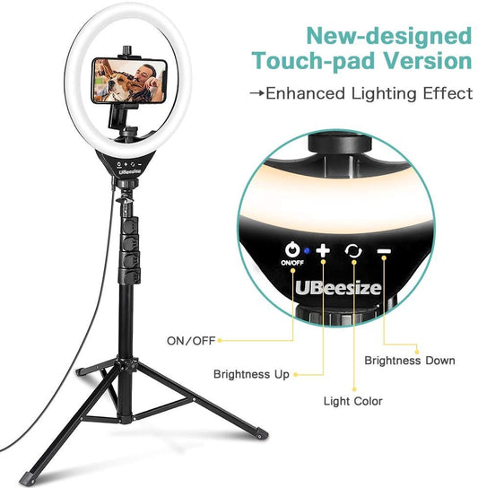 Ubeesize 10’’ Ring Light with Tripod, Selfie Ring Light with 62’’ Tripod Stand, Light Ring for Video Recording & Live Streaming(Youtube, Instagram, TIK Tok), Compatible with Phones and Cameras