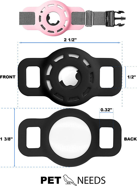 MARVAL Petneeds Airtag Cat Collar Holder, 2 Pack Protective Air Tag Case for Dog Collar within 1/2 Inch, 4 B Black