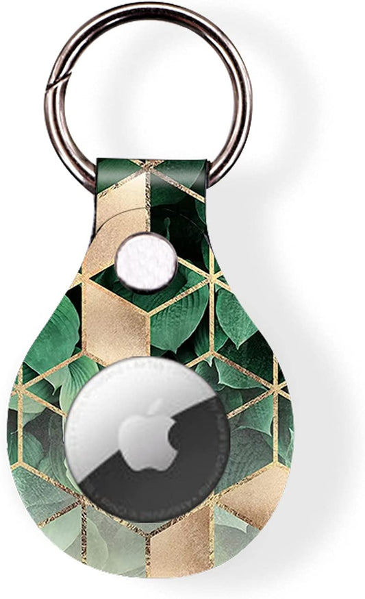 Coki Anti-Scratch Lightweight Protective Case for Apple Airtag 2021, Marble Portable Cover with Accessory for Airtags Keychain, Soft Flexible Pets Anti-Lost Tag Holder (1Pcs, Marble Gold Green)