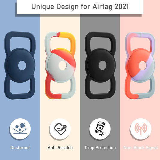 Silicone Airtag Holder with Airtags Case Keychain 6 Pack, Air Tag Holder Airtag Key Ring Cases Protective Cover Airtag Pet Loop Holder for Luggage Dogs Cats Collar Backpack, Airtag Accessories Holder