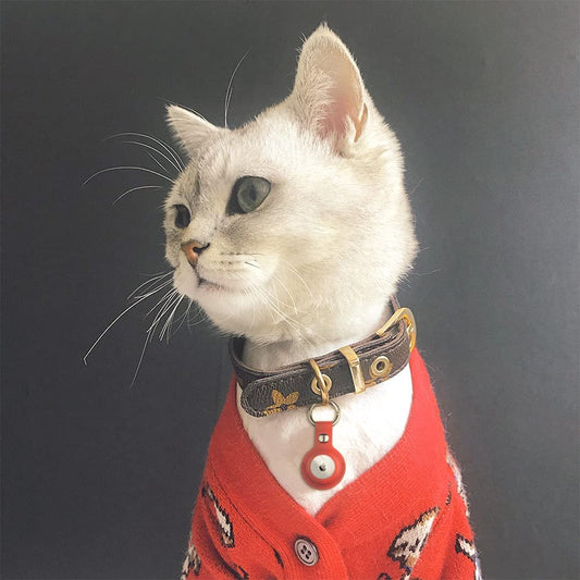 Krazytag Airtag Dog Collar with Built-In Tag Space – Luxurious Collar Premium Leather with Apple Airtag Holder for Dogs and Cats – Play-Proof Design (Medium), Brown