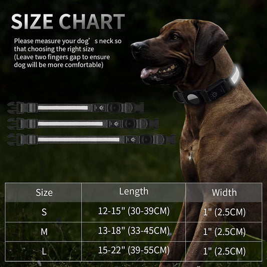 LED Air Tag Dog Collar, Dog Collar with Airtag Holder[Ipx7 Waterproof], Light up Dog Collar Compatible with Apple Airtags, Durable Rechargeable Lighted Air Tag Pet Collar for Large Dogs(L, Black)