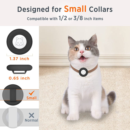 Airtag Cat Collar Holder (4 Pack), Small Air Tag Cat Collar Holder, Silicone Pet Collar Case for Apple Airtag Compatible with Cat Dog Pet Collar within 3/8 Inch - Small - Black,Blue,Orange,Floral