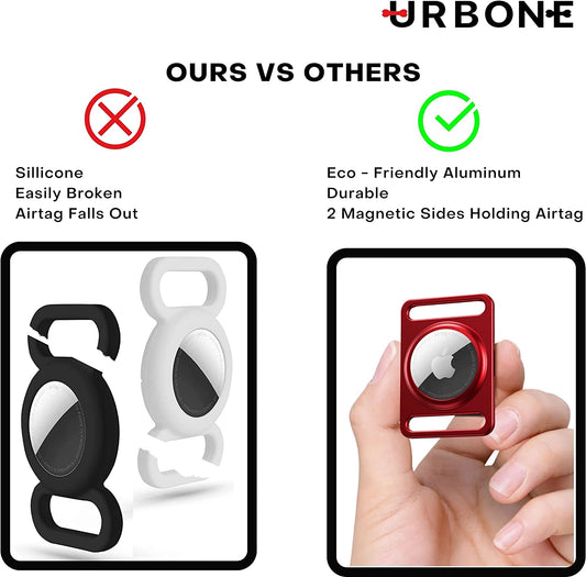 Urbone Airtag Dog Collar Holder - Premium Durable Air Tag Case Dog Trackers for Apple Iphone - Apple Airtag for Pets Dog Walking Accessories & Dog Essentials, Red