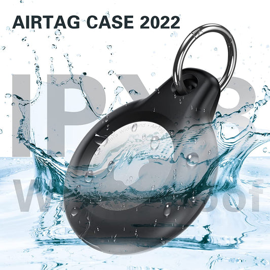 GOLDJU for Airtag Keychain Case Waterproof, 2 Pack Apple Airtag Holder [Shockproof Protective] [Anti-Scratch with Key Ring] Air Tag Case for Dog, Wallet, Luggage (Black & Blue)