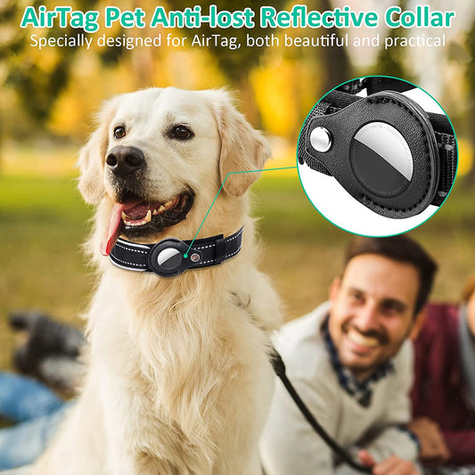 Airtag Dog Collar with Safety Lock, Adjustable Nylon Reflective Dog Collar, with Apple Airtag Protective Cover Accessory, Thick GPS Pet Collar, Suitable for Medium and Medium-Sized Dogs