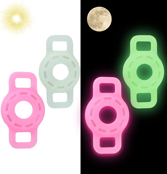 Funincrea Dog Collar Airtag Holder(2 Pack) Silicone Airtag Dog Collar Holder Airtag Cat Collar Durable Pet Collar Case for Apple Airtags Compatible with Cat Dog Collars (Luminous Green/Luminous Pink)