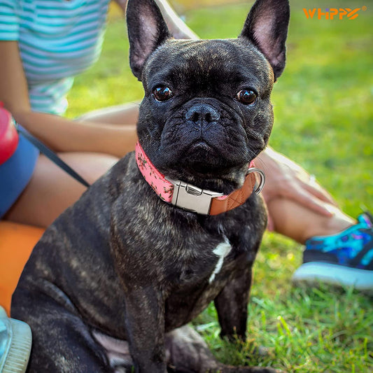 WHIPPY Girl Floral Dog Collar Cute Pink Flower Print Puppy Collar Adjustable Heavy Duty Nylon Collar with Metal Buckle Soft Comfortable Collar for Small Medium Large Dog Pet,M,Flower Pink