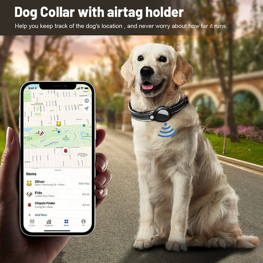 Dog Collar with Air Tag Holder, Leather Air Tag Holder Dog Collar, Adjustable Air Tag Dog Collar Holder Anti-Lost Air Tag Collar for Dogs (Black)