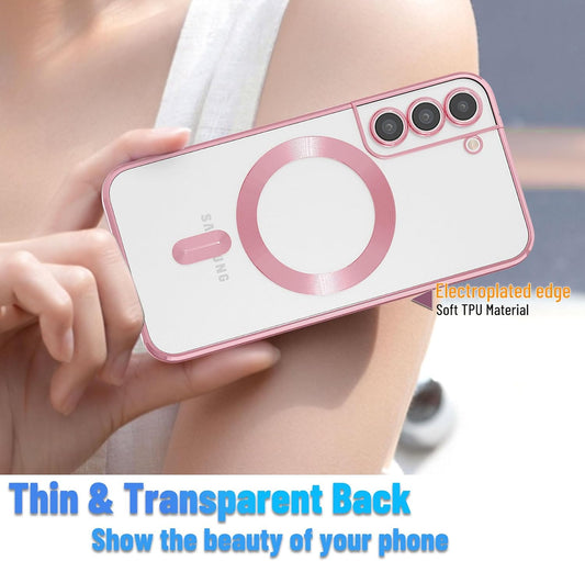 Yetagso Magnetic for Samsung Galaxy S21 Case,Electroplated Clear Slim Samsung S21 Phone Case with Camera Protection,Shockproof Samsung S21 Case Compatible with Magsafe, Pink Edge