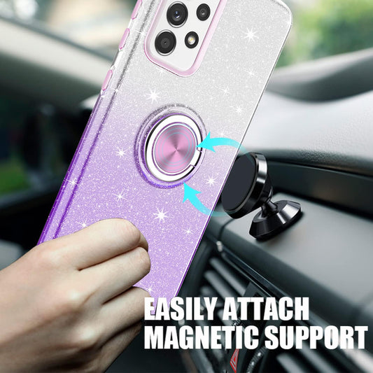 TJS Compatible with Samsung Galaxy A53 5G Case, with Tempered Glass Screen Protector, Metal Ring Magnetic Support Kickstand Tone Shinny Glitter Girls Women Protector Phone Case (Purple)