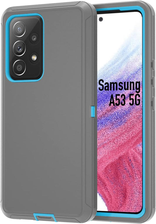 Case for Galaxy A53 5G,Samsung A53 Heavy Duty Case[ with Clip][Shockproof] [Dropproof] [Dust-Proof], Case for Samsung Galaxy A53(Gray/Skyblue)