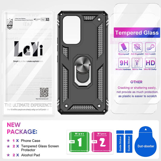 Leyi for Galaxy A53 5G Case with [2 Pack] Screen Protectors, A53 5G Case [Military-Grade] Shockproof Protective Case, Samsung Galaxy A53 Ring Kickstand Phone Cover Case for Samsung A53 5G, Black
