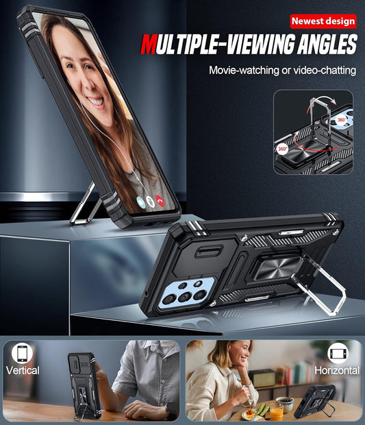 Leyi for Galaxy A53 5G Case: Galaxy A53 5G Case with Slide Camera Cover + [2 Packs] Screen Protector, 360 Full Body Military-Grade Phone Case with Upgrade Kickstand for Galaxy A53 5G, Black