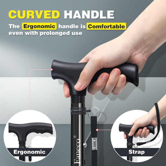 FANECO Walking Cane, Folding Walking Stick for Seniors, Pivoting Quad Base, Lightweight Adjustable Walking Stick for Men/Women