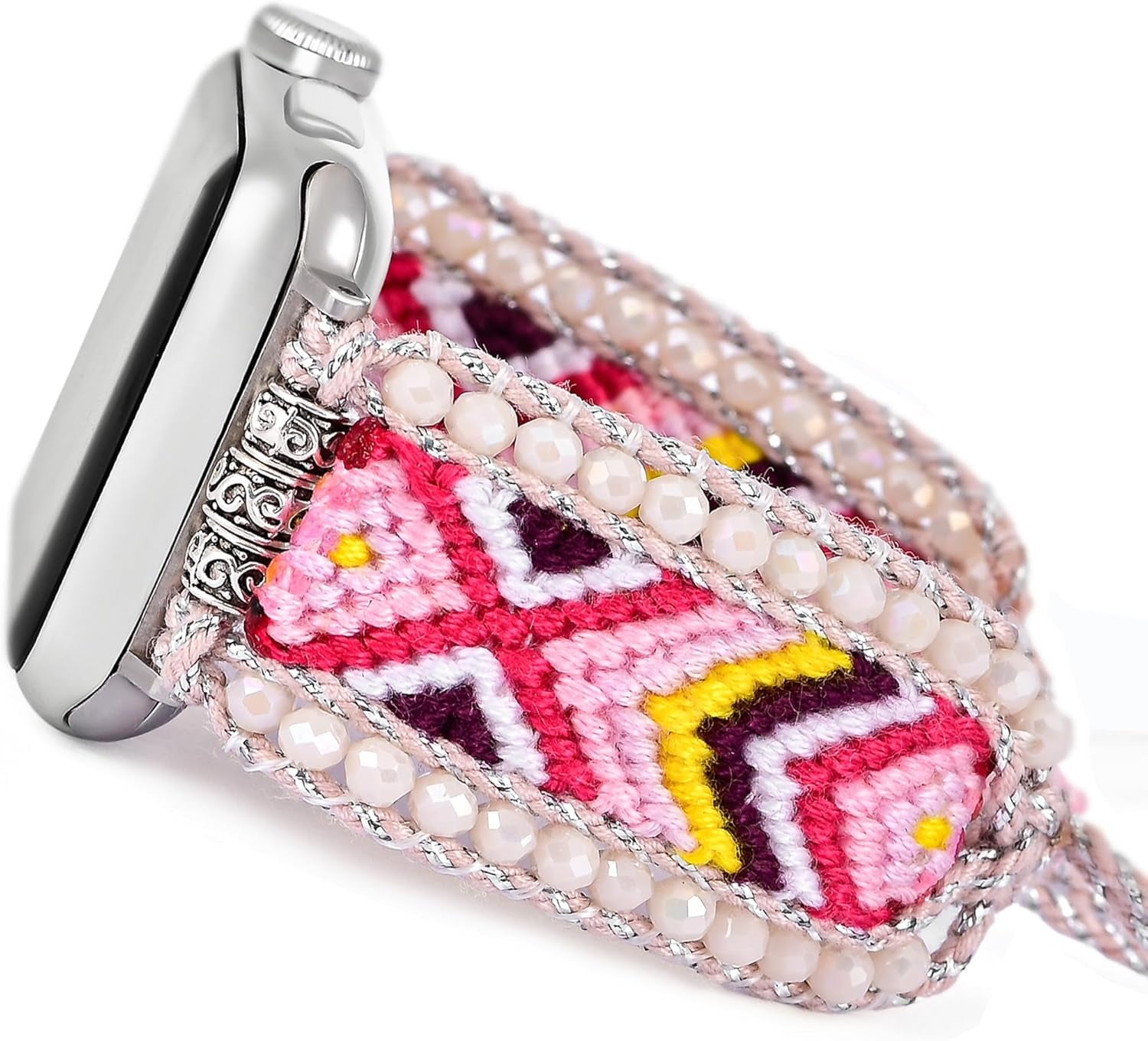 Fancy Woven Braided Nylon Band Compatible with Apple Watch Bands 40Mm 41Mm 38Mm, Retro Boho Friendship Bracelet Handmade Bohemian Beaded Adjustable Dressy Strap Wristbands for Iwatch Bands Series 9/8/7/6 5/4/3/2/SE