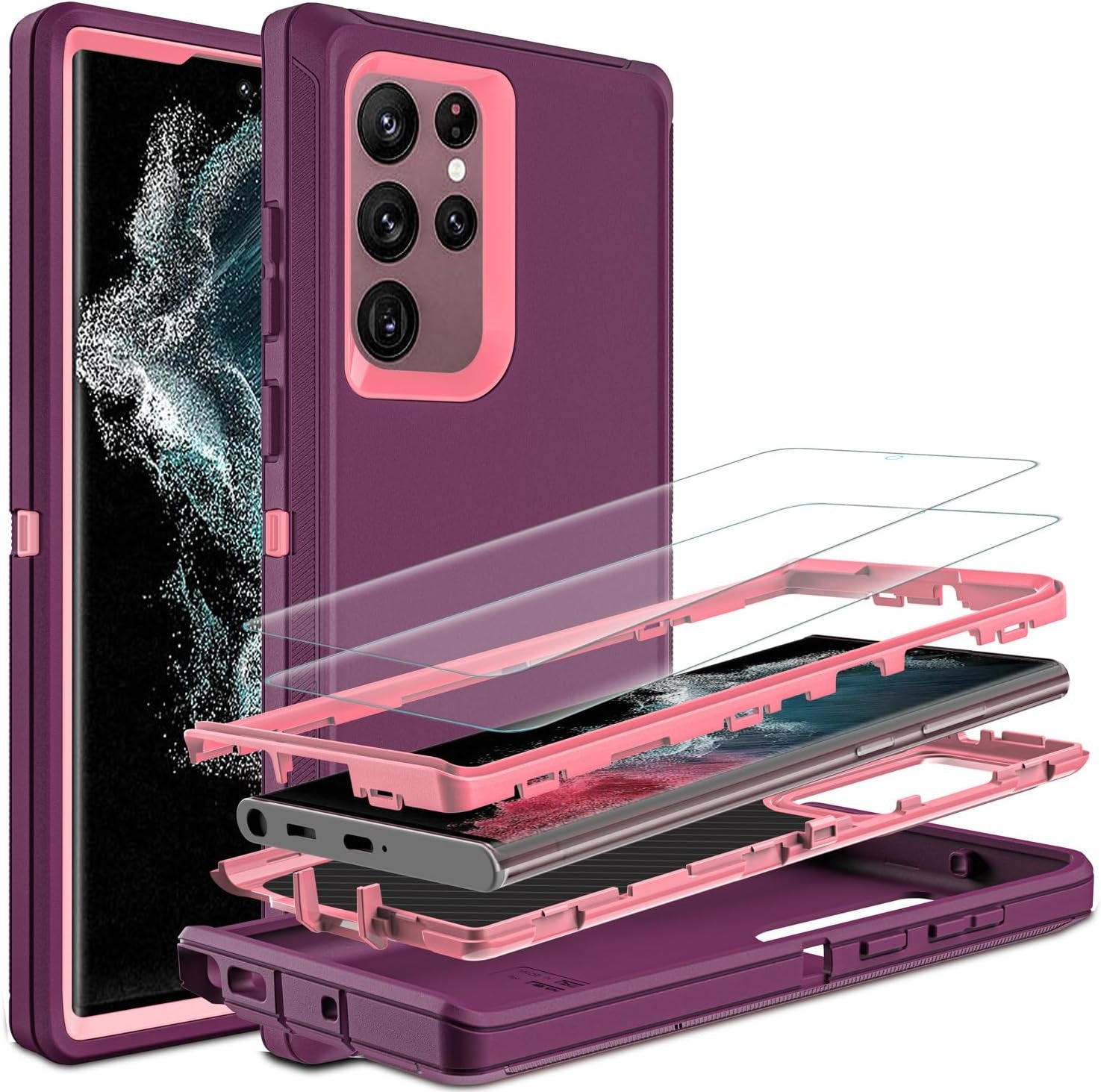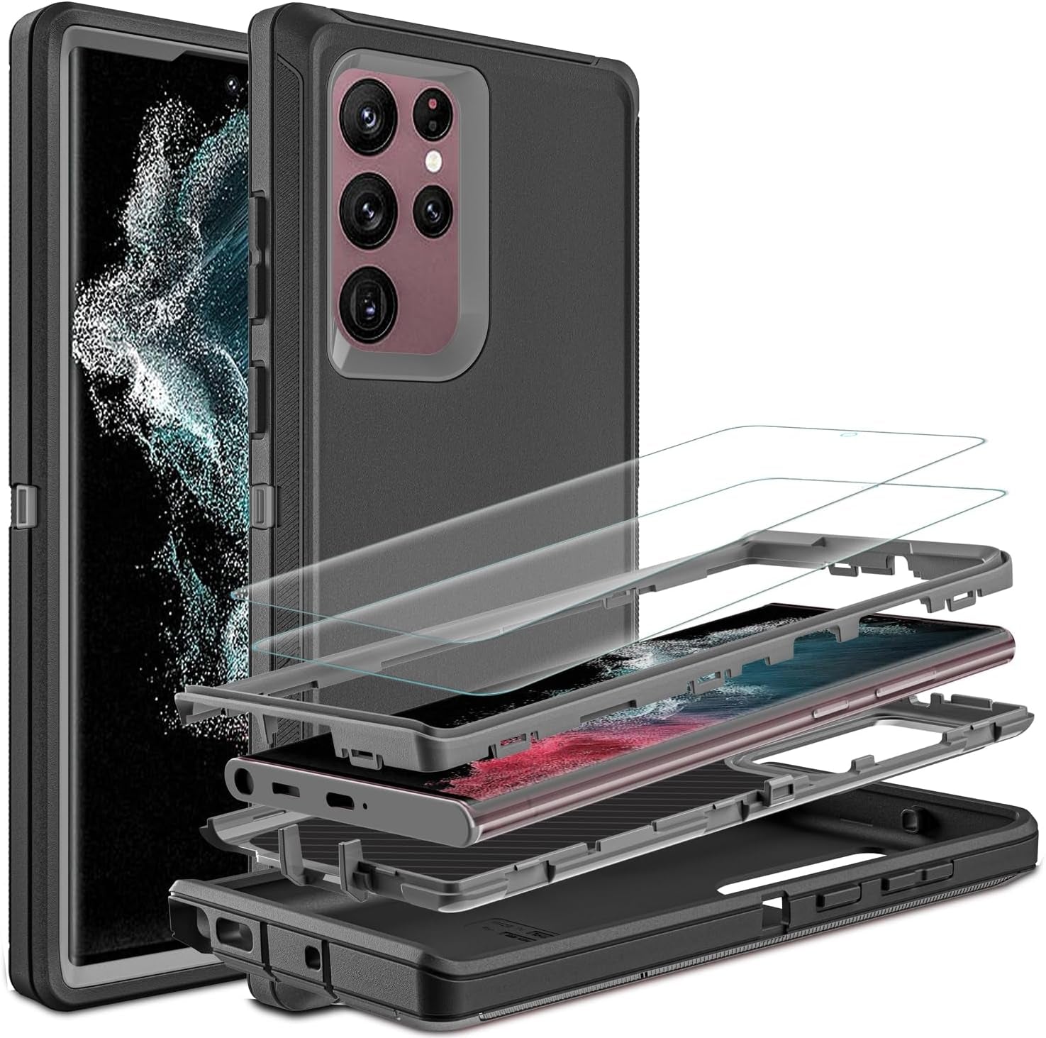 - 【Durable material] 】: Samsung Galaxy S22 Ultra Case Adopts 3 in 1 design, constructed from high-grade Silicone and PC polycarbonate, will withstand accidental drops, bumps and shock. Rubberized textured case adds protection and makes gripping your Galaxy S22 Ultra safe and easy.