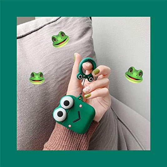ZAHIUS Coque en silicone légère compatible avec Apple Airpods 1 et 2 [motif de dessin animé] [conçue pour les enfants filles et garçons] (grand œil grenouille vert)