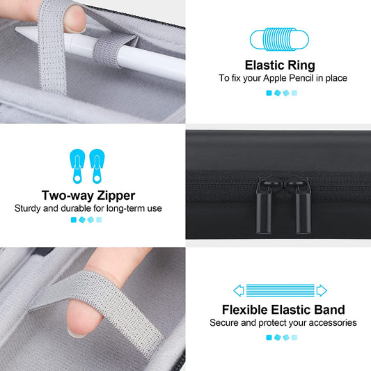 Lacdo Étui à crayons Apple pour Apple Pencil 2Nd/1St, iPad Pro Pen Pencil, accessoires Apple Pen, stylet Samsung Huawei, câble USB, écouteurs, étui de protection rigide en EVA, noir