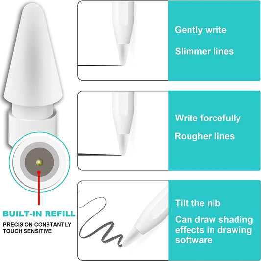 Stylo à pointe fine amélioré comme pointes de crayon d'écriture compatibles avec Apple Pencil Gen 1St, 2ème, pointes de crayon résistantes à l'usure au toucher papier pour iPad, adaptées au stylet Apple Ipad Pro, paquet de 2 blancs