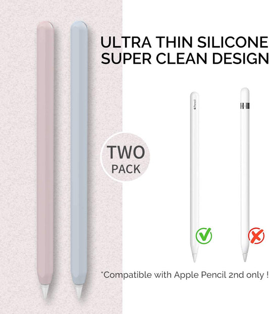 Ahastyle Coque ultra fine en silicone compatible avec Apple Pencil 2ème génération, iPad Pro 11 12,9 pouces - Lot de 2 (bleu clair et rose)